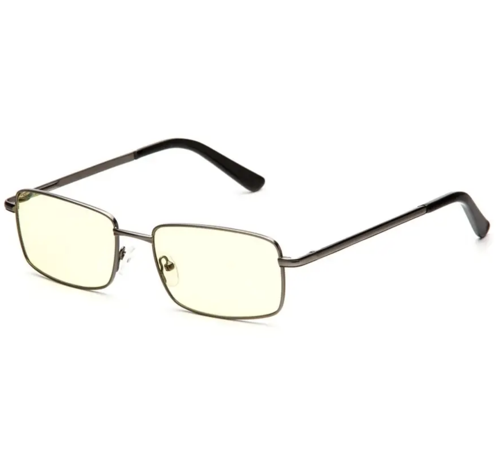 Компьютерные очки в крупной металлической оправе классической прямоугольной формы на широкое лицо.