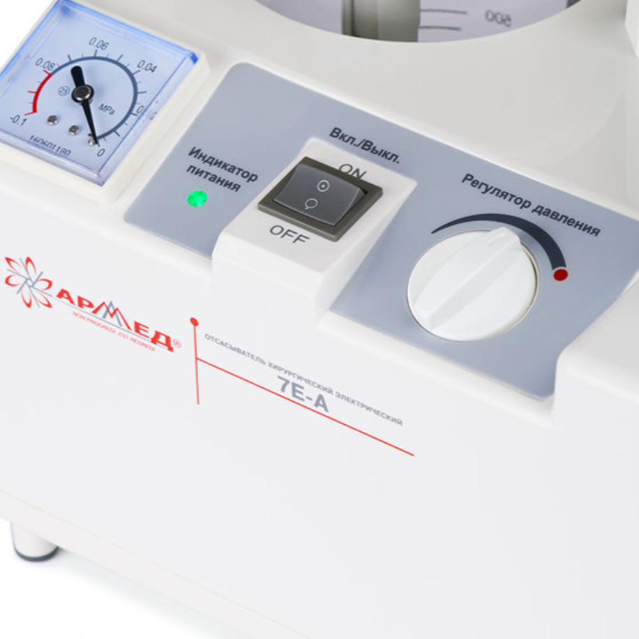 Переносной хирургический отсасыватель имеет небольшие габариты и оснащен удобной ручкой, поэтому его удобно переносить.