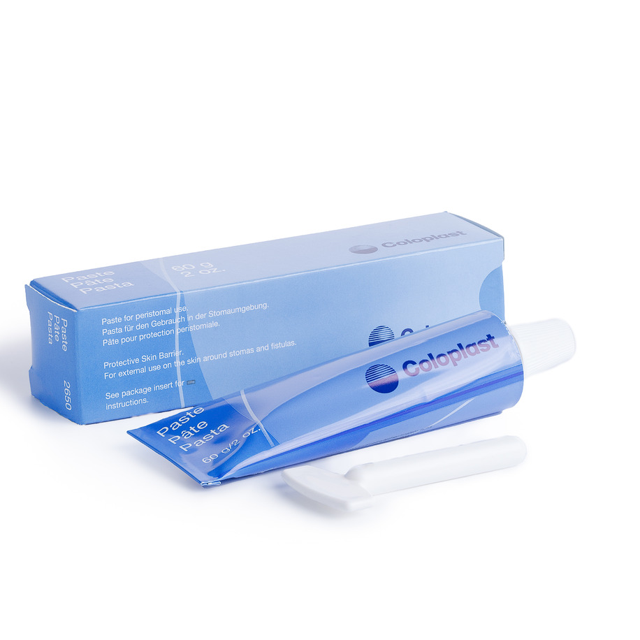 Для выравнивания кожных складок вокруг стомы используется паста Coloplast.