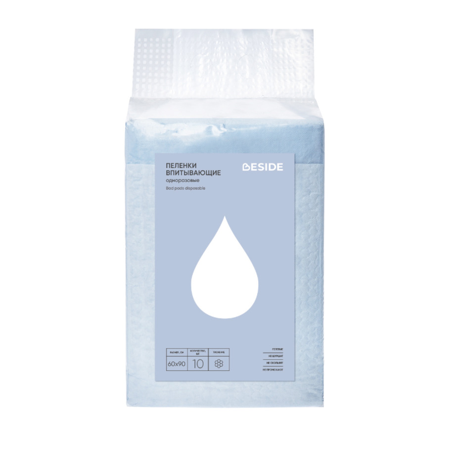 • Одноразовые впитывающие пеленки 60×90 см торговой марки BESIDE предназначены для защиты постельного белья и мягкой мебели.