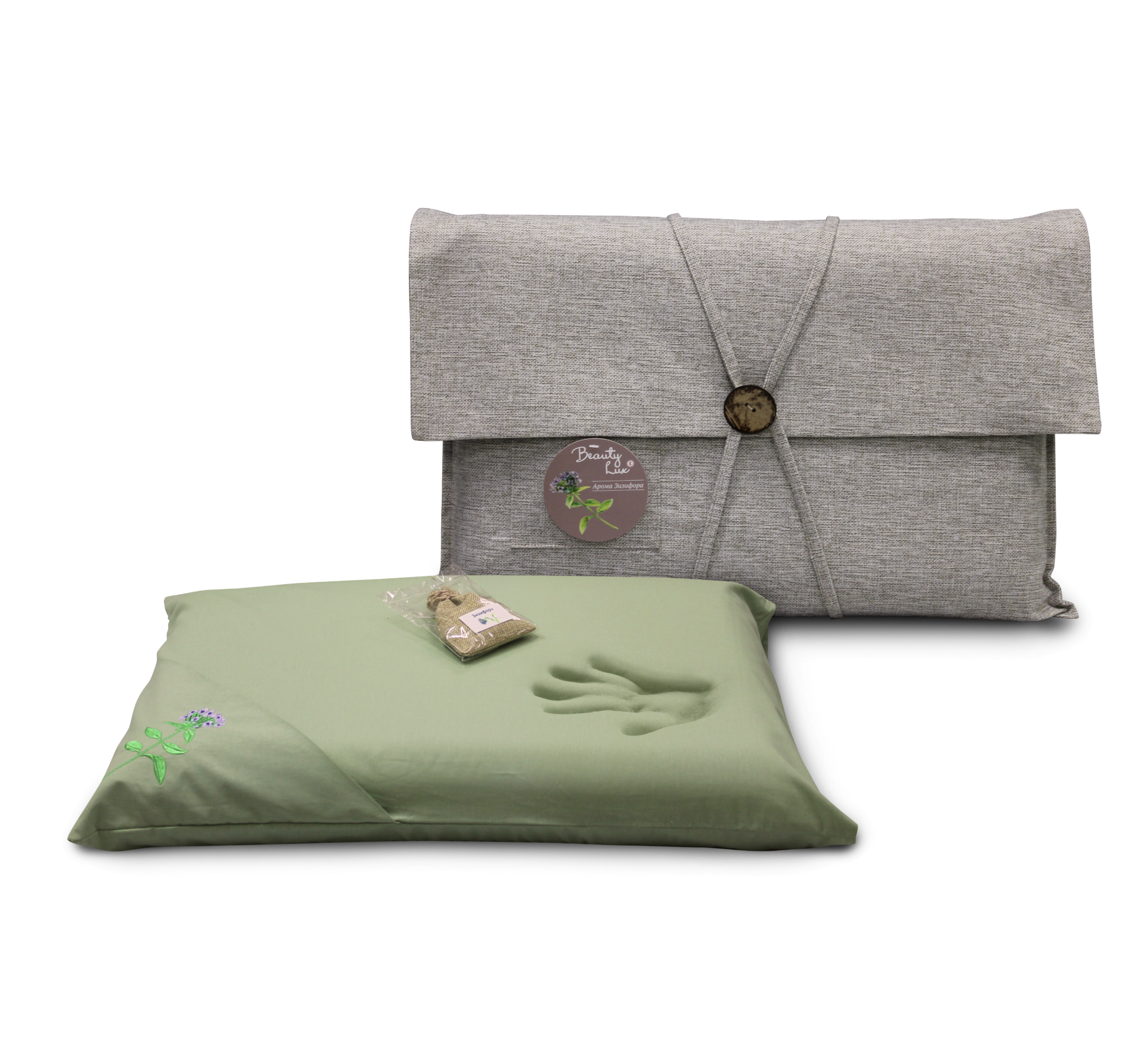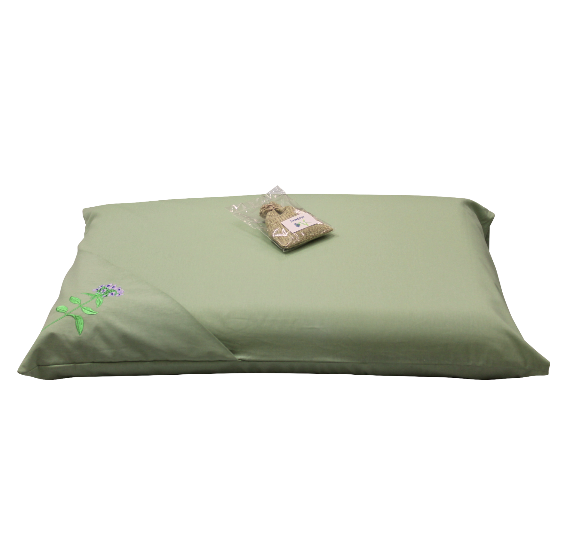 Внешняя наволочка прямоугольной формы с вышивкой зизифора, пошита из ткани поплин, которая обладает хорошими воздухопроницаемыми свойствами.