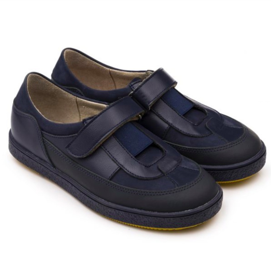 • Модные полуботинки для школы из мягкой натуральной кожи и нубука классического синего цвета с защитным покрытием на носке подойдут как девочкам, так и мальчикам.