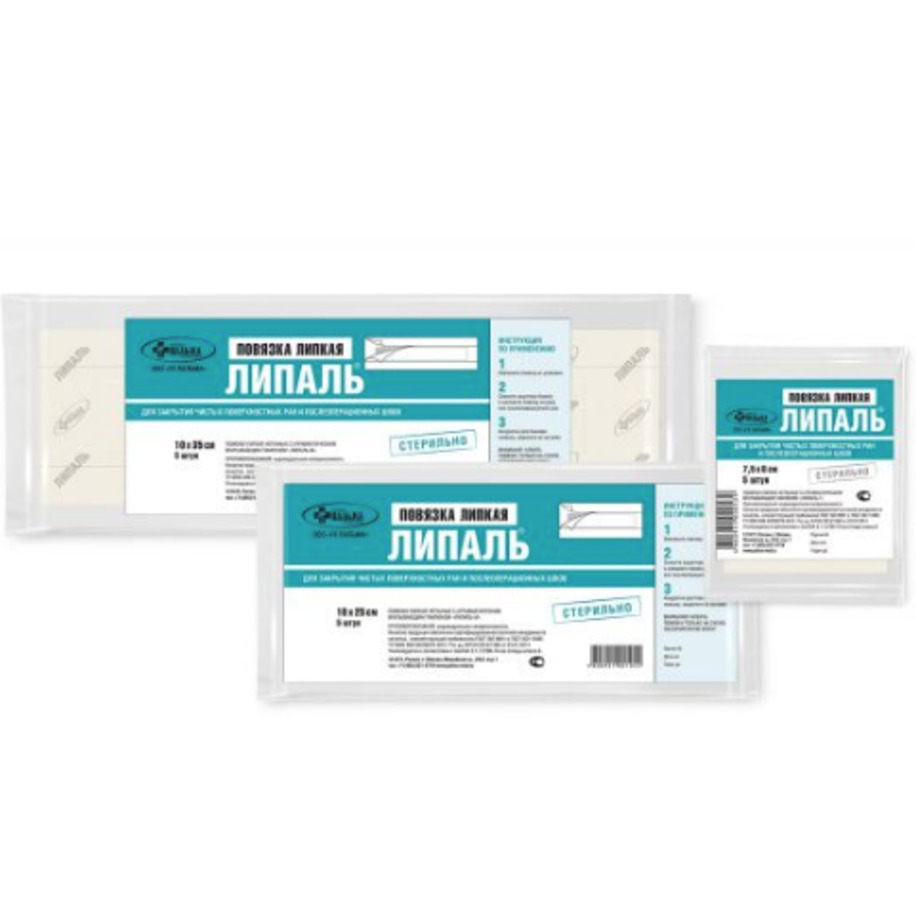 • Для закрытия чистых ран и послеоперационных швов выпускаются стерильные липкие само фиксирующиеся послеоперационные повязки разных размеров.