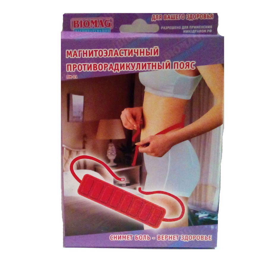 Пояс магнитоэластичный противорадикулитный эффективно используется для лечения радикулита, остеохондроза позво-ночника, артрозаритрита крестцово-позвоночных сочленений, болезненных менструаций, и профилактики болезней опорно-двигательного аппарата, нервной и сердечно-сосудистой системы.