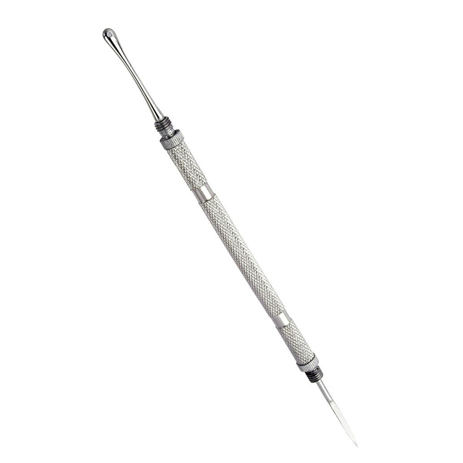Прыщеудалитель копьё с двумя сменными насадками. (Экстрактор косметологический). Разборный. При изготовлении покрытия не использовались, возможны любые виды стерилизации. Сделан из нержавеющей медицинской стали. Прыщеудалитель копьё очень удобен. С одной стороны — ложка УНО с одним отверстием, с другой — игла Видаля. При правильном использовании прослужит не один десяток лет. При необходимости есть возможность снять "копьё" для безопасной работы с экстрактором.