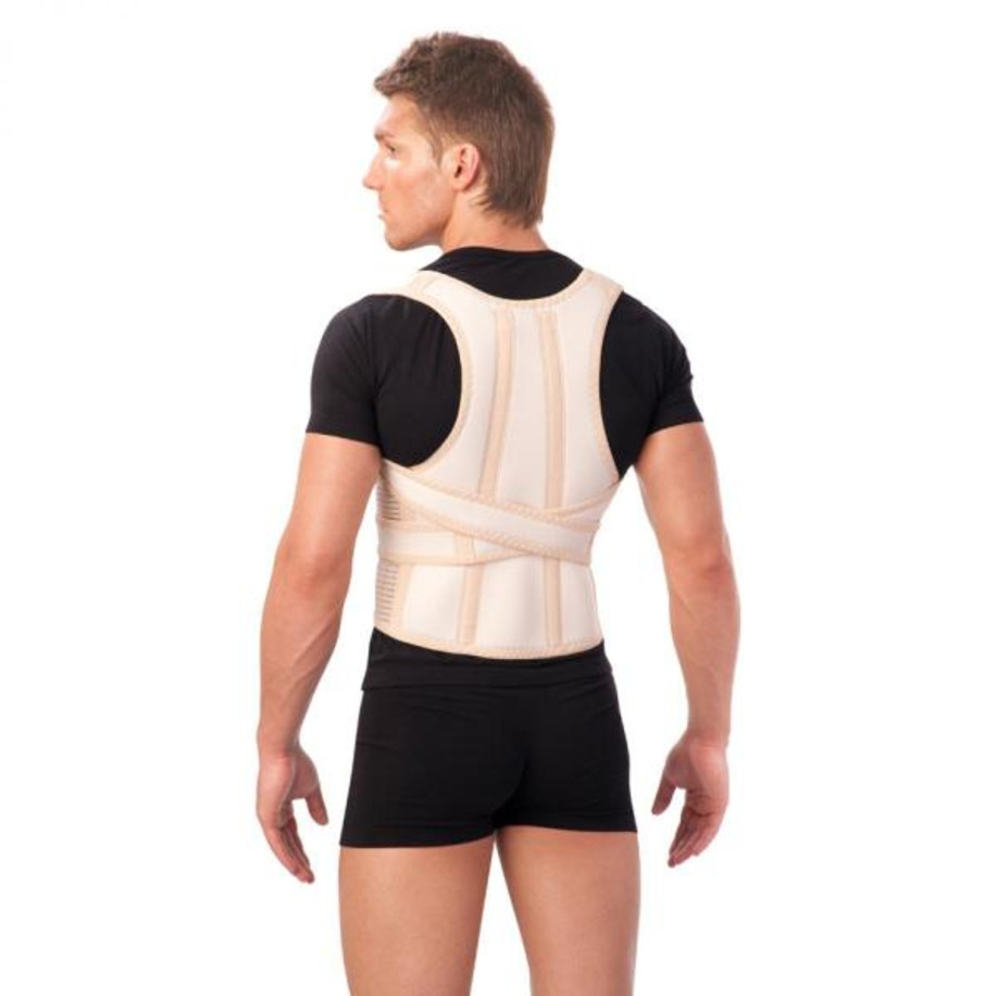 снабжен двумя съемными моделируемыми металлическими ребрами жесткости и системой эластичных лямок для восстановления и сохранения правильной осанки