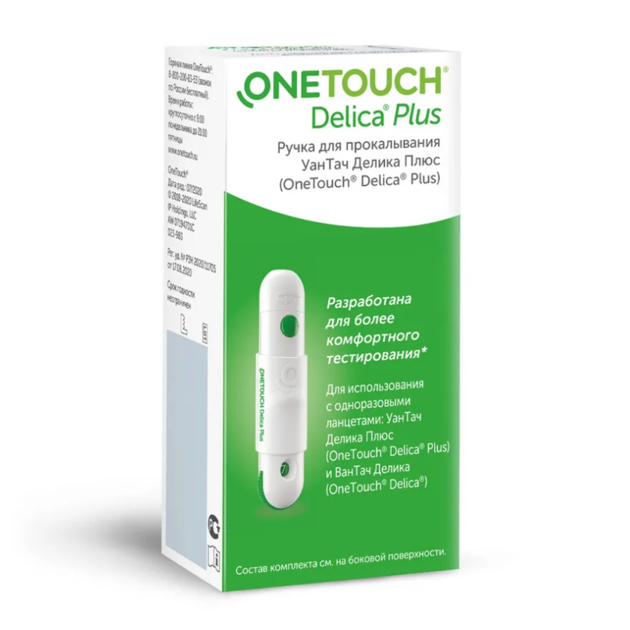 • Совместимость с ланцетами: Ручка для прокалывания OneTouch Delica Plus (Уан Тач Делика Плюс) совместима с ланцетами OneTouch Delica (Уан Тач Делика) и с ланцетами OneTouch Delica Plus (Уан Тач Делика Плюс) в упаковке по 25 или 100 штук.