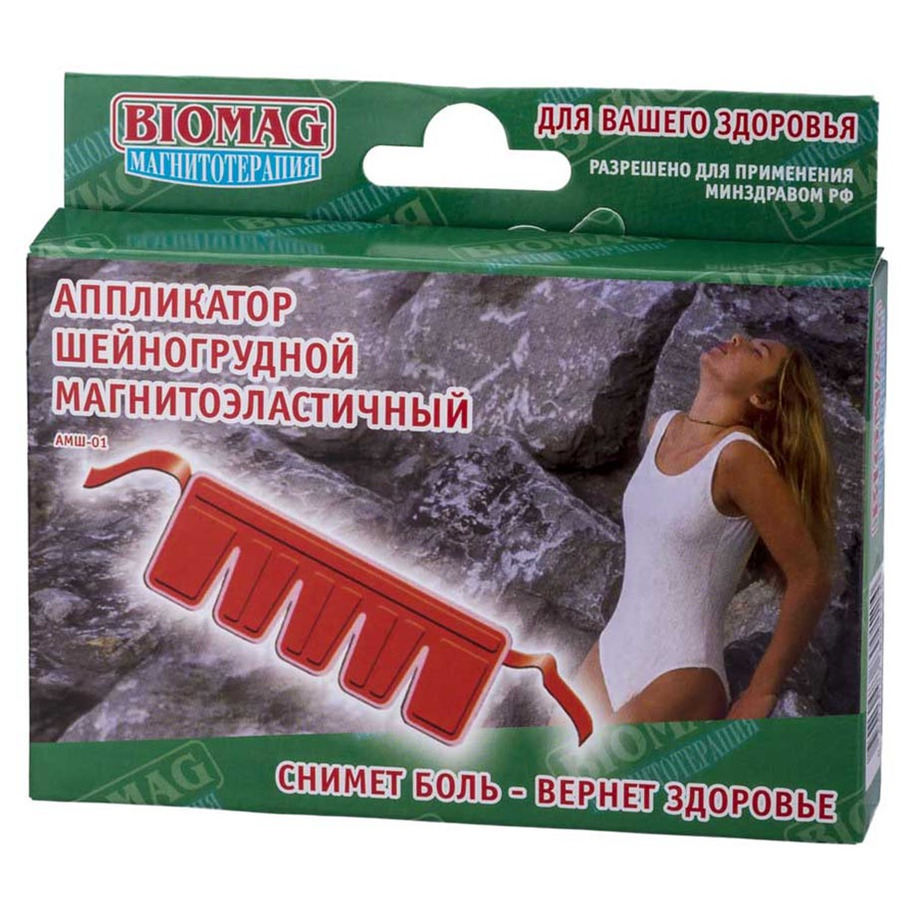 Аппликатор шейно-грудной магнитоэластичный предназначен для лечения и профилактики следующих заболеваний: шейного остеохондроза, ишемии и дистонии головного мозга, гипертонической болезни, атеросклероза сосудов головного мозга, для купирования головной боли в области затылка.