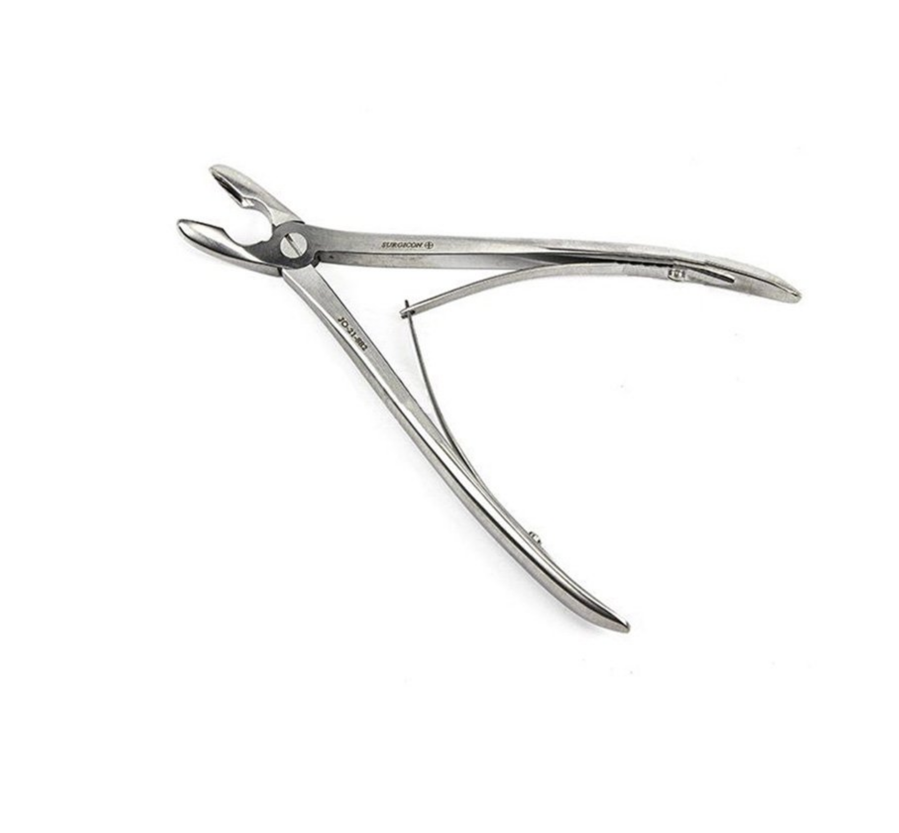 Щипцы-кусачки костные с круглыми губками изогнутые (Щ-61) — инструмент для рассечения кости, скусывания небольших костных выступов при хирургической обработке ран.