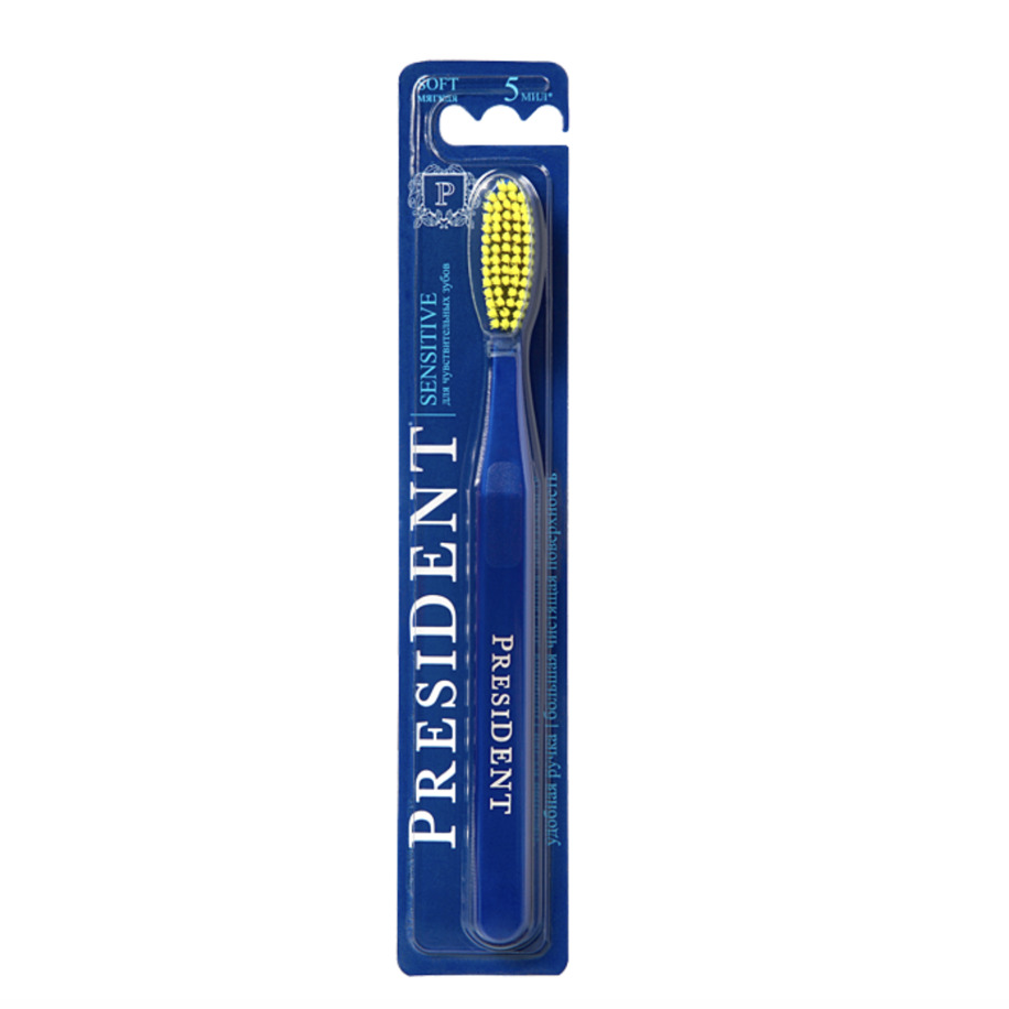 Зубная щётка Sensitive от PresiDENT с мягкой щетиной и крупной головкой.