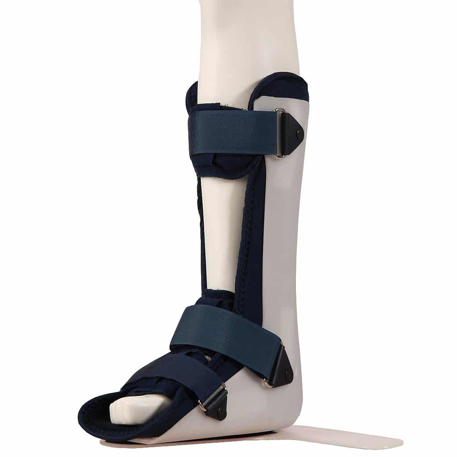 Деротационный ортез выполнен из пластика, снабжен застежкой велкро. Обеспечивает фиксацию голеностопного сустава и нижней трети голени во фронтальной плоскости, фиксацию нижней конечности с корректировкой внутренней и наружной ротации. Используется для реабилитации лежачих больных.