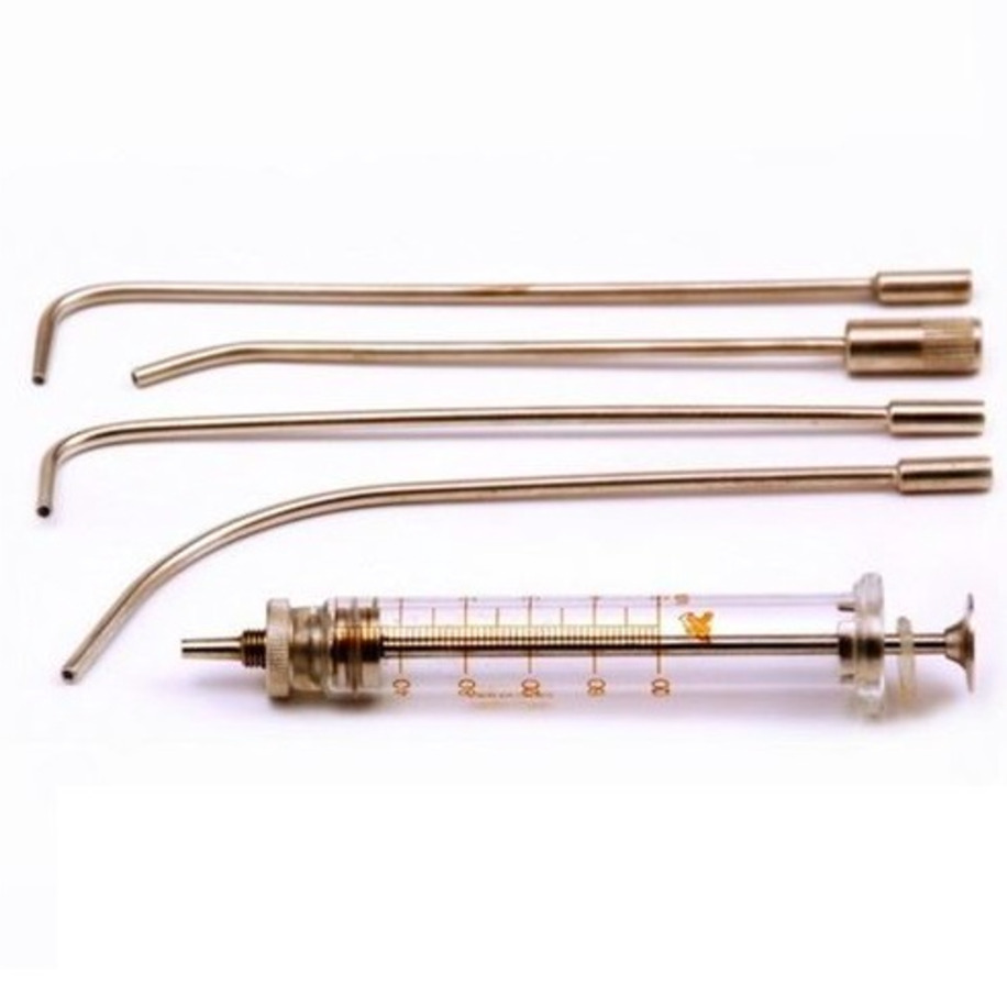 Металлические детали шприца и сменных наконечников изготовлены из нержавеющей стали и латуни с гальванопокрытием.
