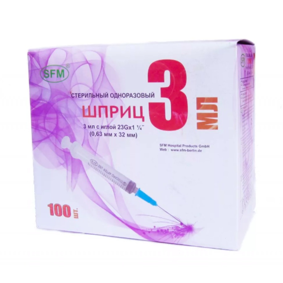 Шприц стерильный одноразовый инъекционный (3-х комп) SFM