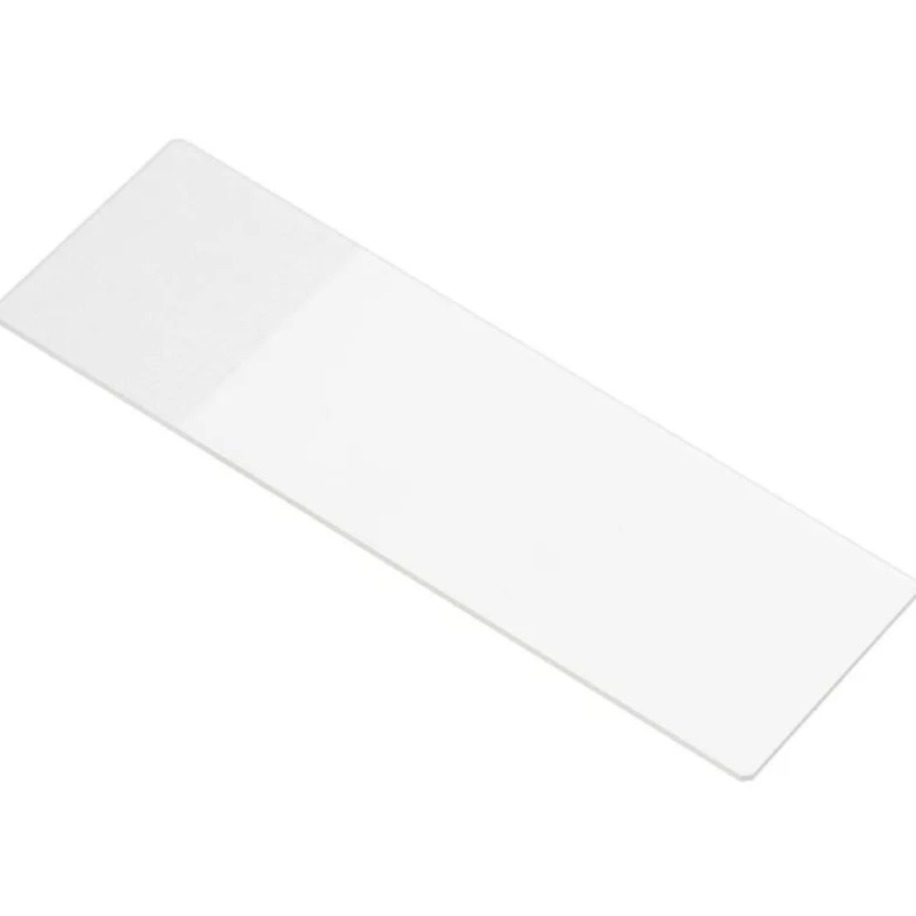 Стекло предметное со шлифованными краями и полосой для записи предназначено для микроскопирования в видимой области спектра.