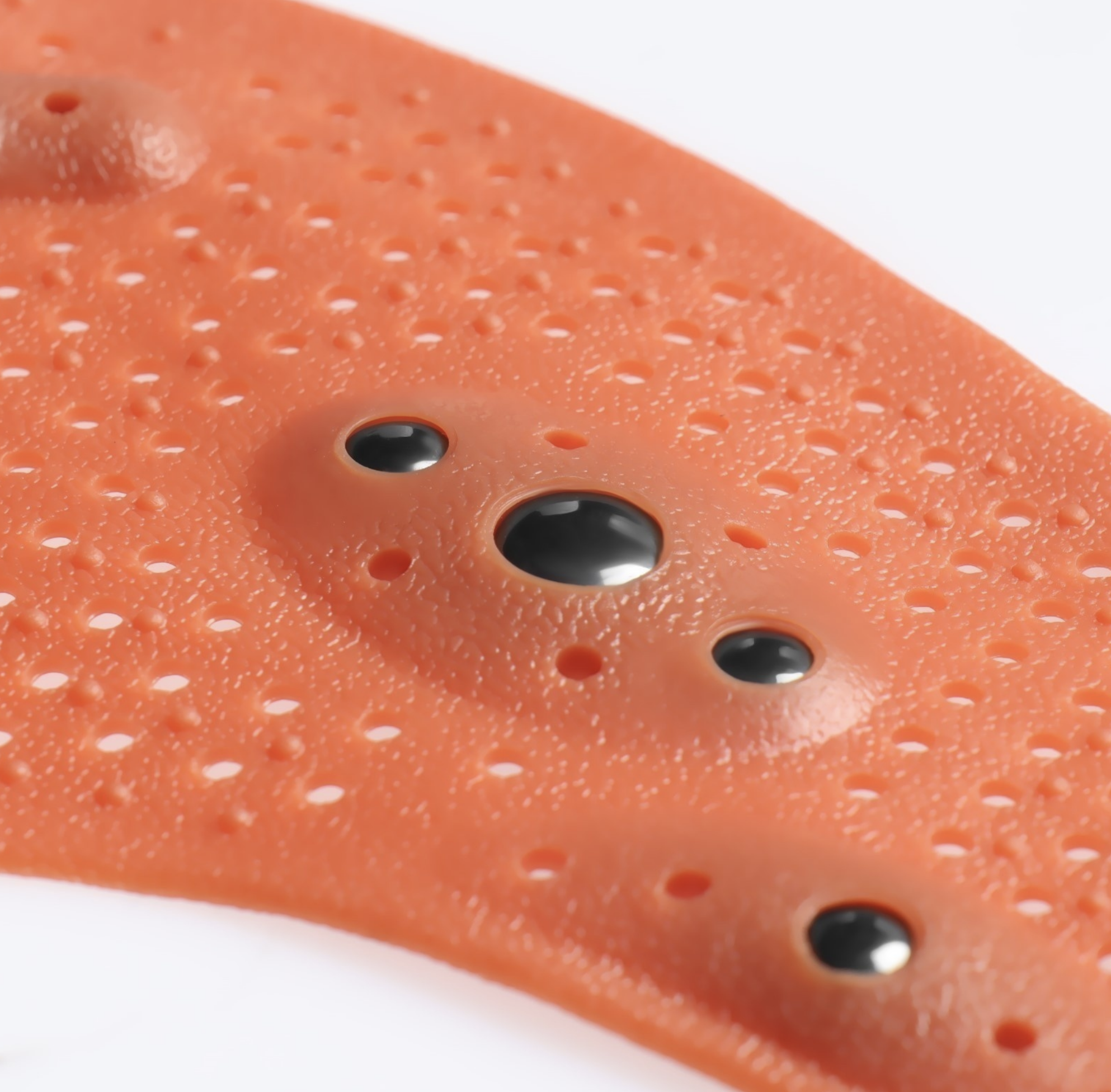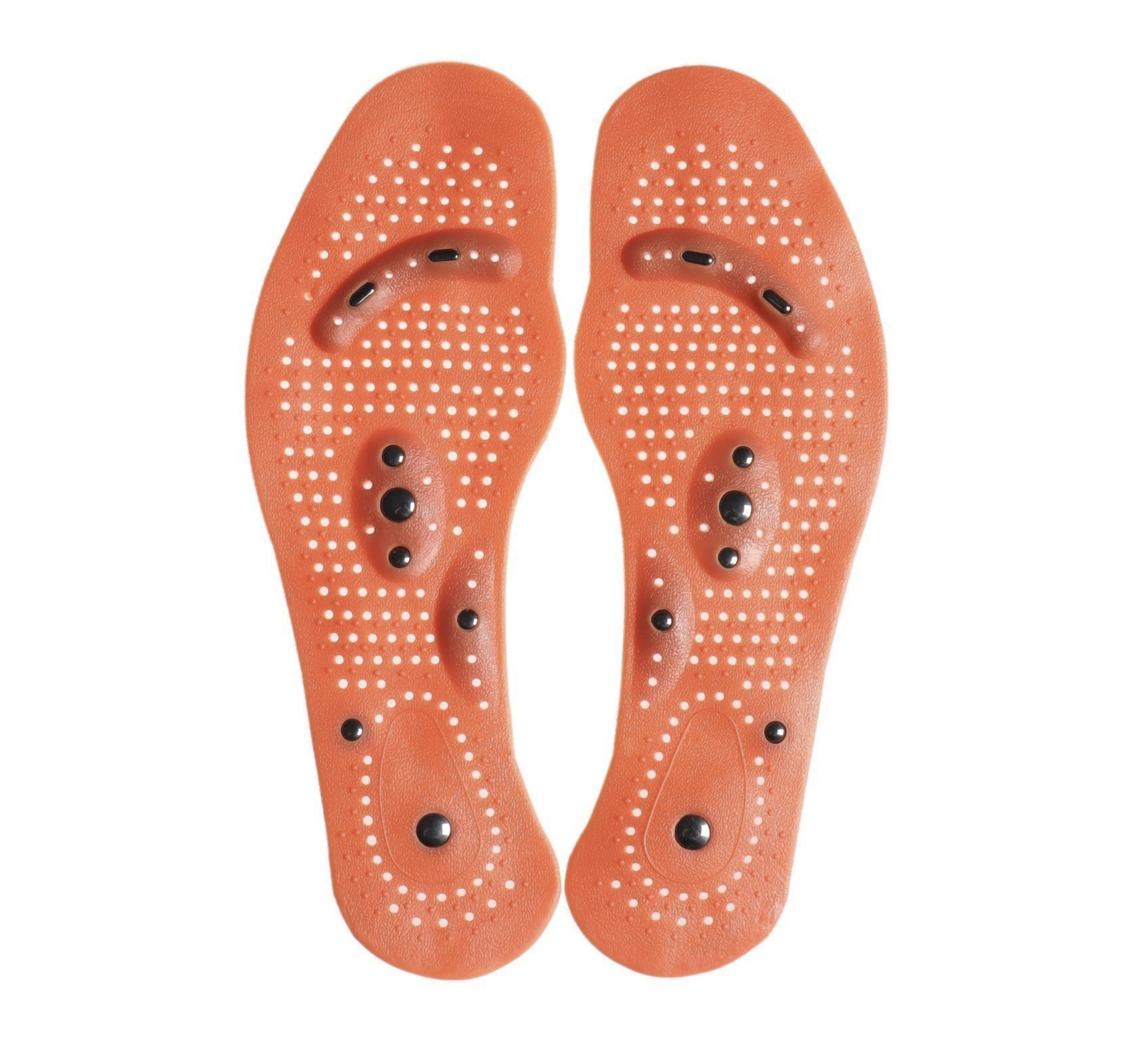 Массажная поверхность стелек с магнитами оказывает влияние на активные точки стоп, что улучшает общее самочувствие и дарит комфорт в течение дня.