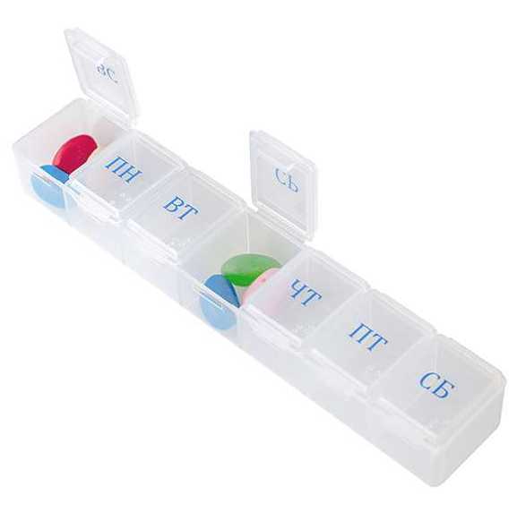 Семь отдельных ячеек, предназначенные для каждого дня недели, напомнят о принятии нужной дозы медикаментов.