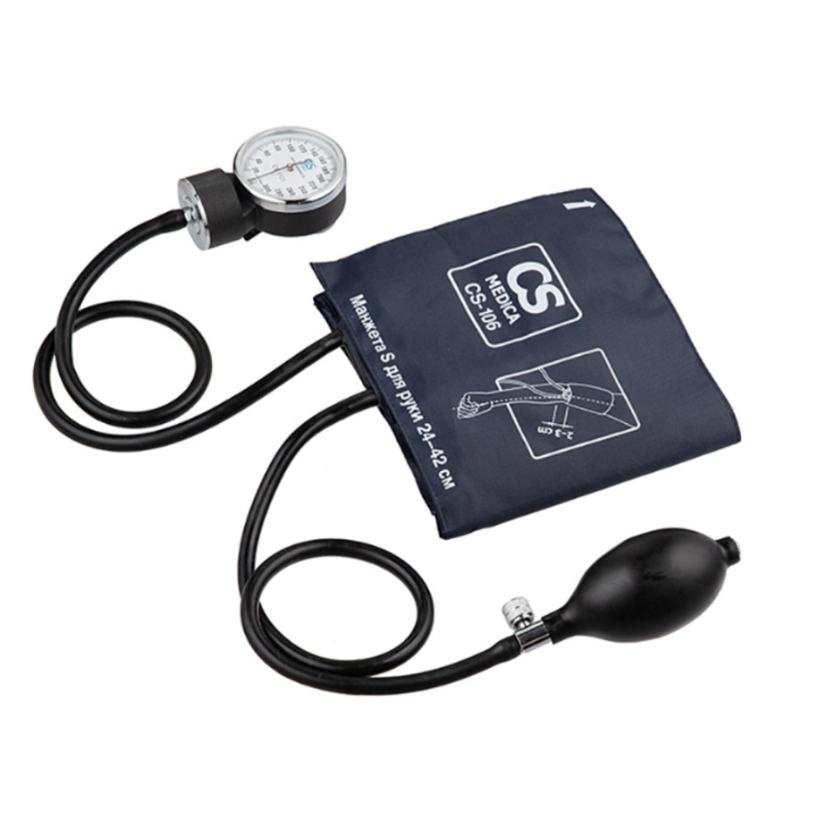 Механический прибор для измерения артериального давления CS Medica CS-106 (без фонендоскопа) снабжен манжетой, которая может устанавливаться на руке окружностью от 22 до 42 см,. способ установки — «нахлест».