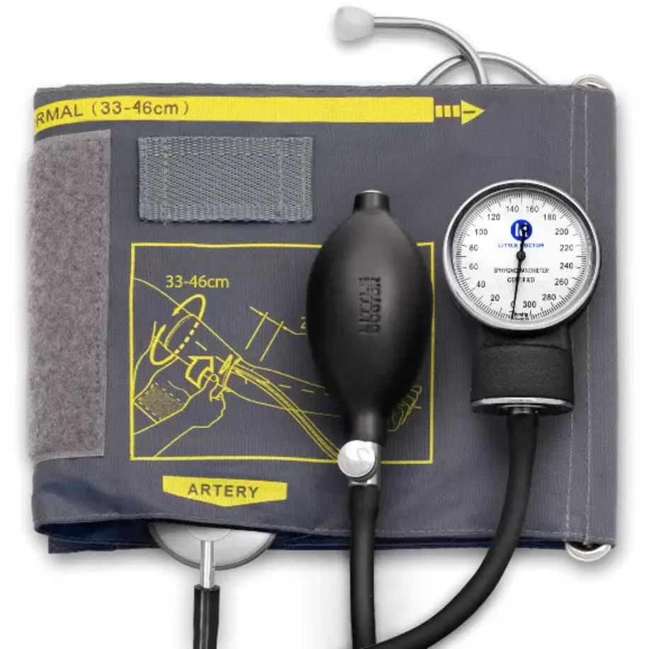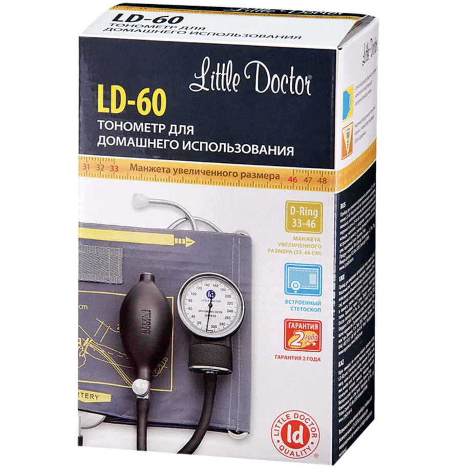 Механический тонометр Little Doctor LD-60 классического типа со встроенным фонендоскопом в манжету с фиксирующим металлическим кольцом.