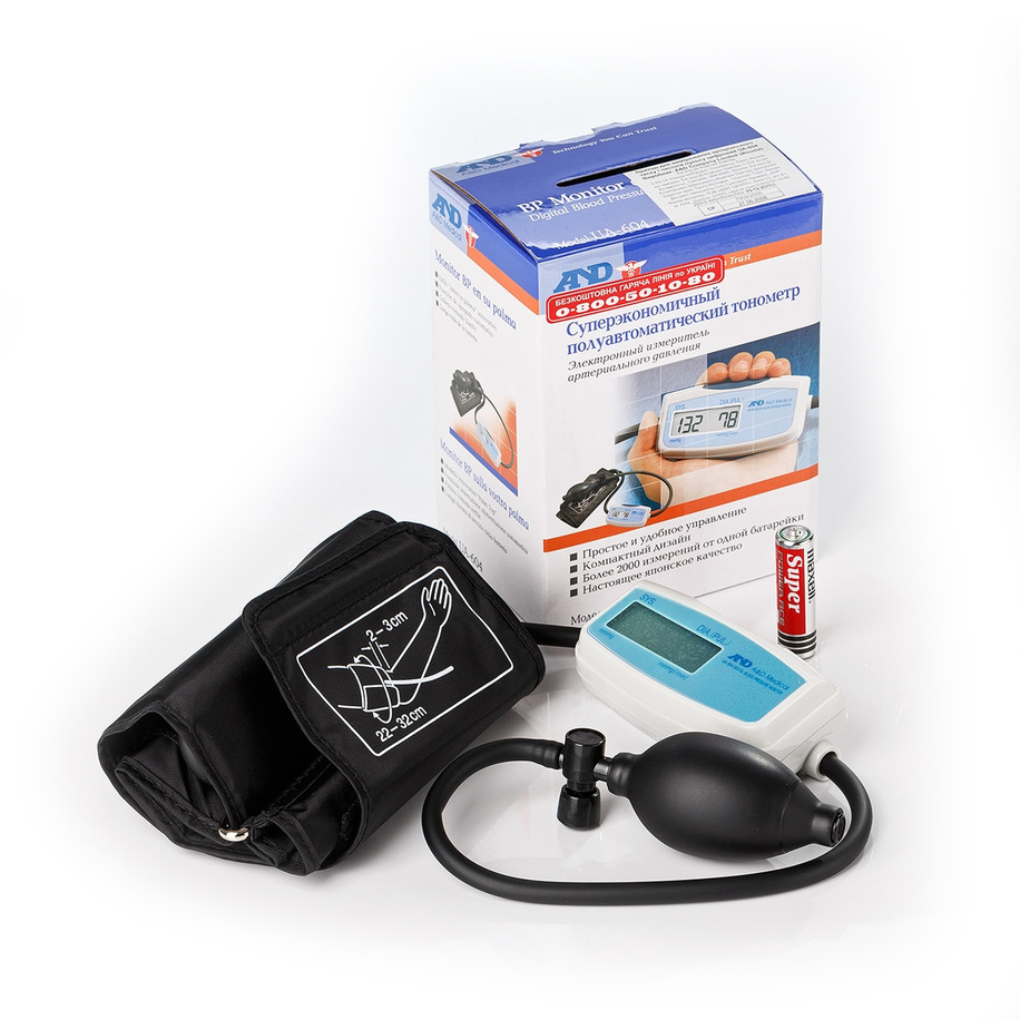 Одна из наиболее популярных моделей полуавтоматических тонометров AND UA-604, имеющая высший класс точности.