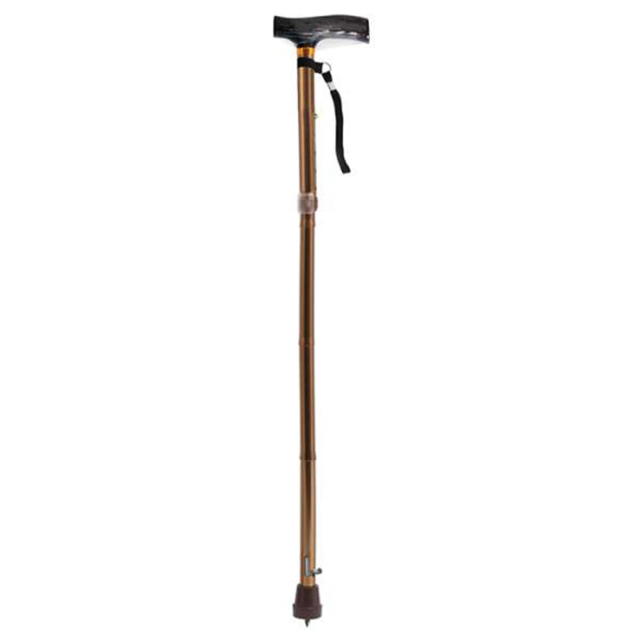 Складная алюминиевая трость 10121 с Т-образной деревянной ручкой с регулировкой по высоте в диапазоне 85-95 см.