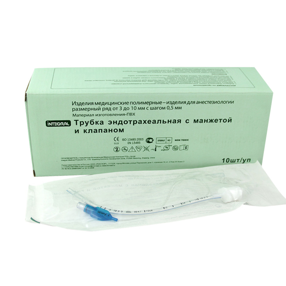 Стерильная эндотрахеальная трубка с манжетой для проведения интубации, подачи кислородно-воздушной смеси или ингаляционного анестетика.