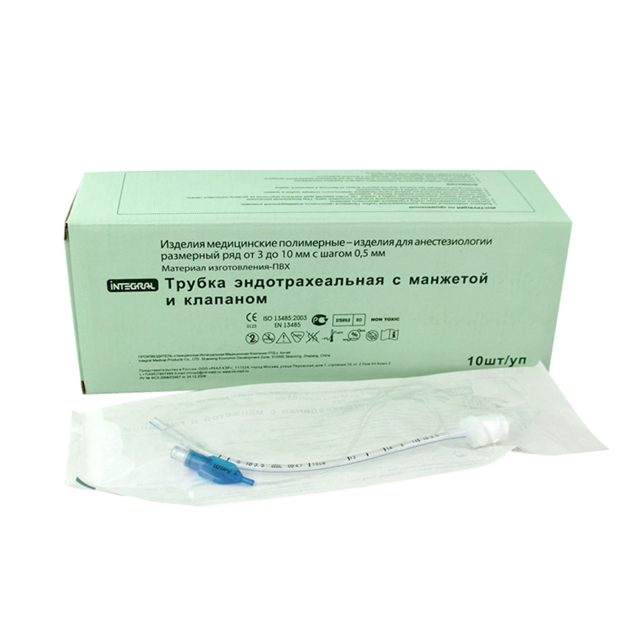 Стерильная эндотрахеальная трубка с манжетой для проведения интубации, подачи кислородно-воздушной смеси или ингаляционного анестетика.