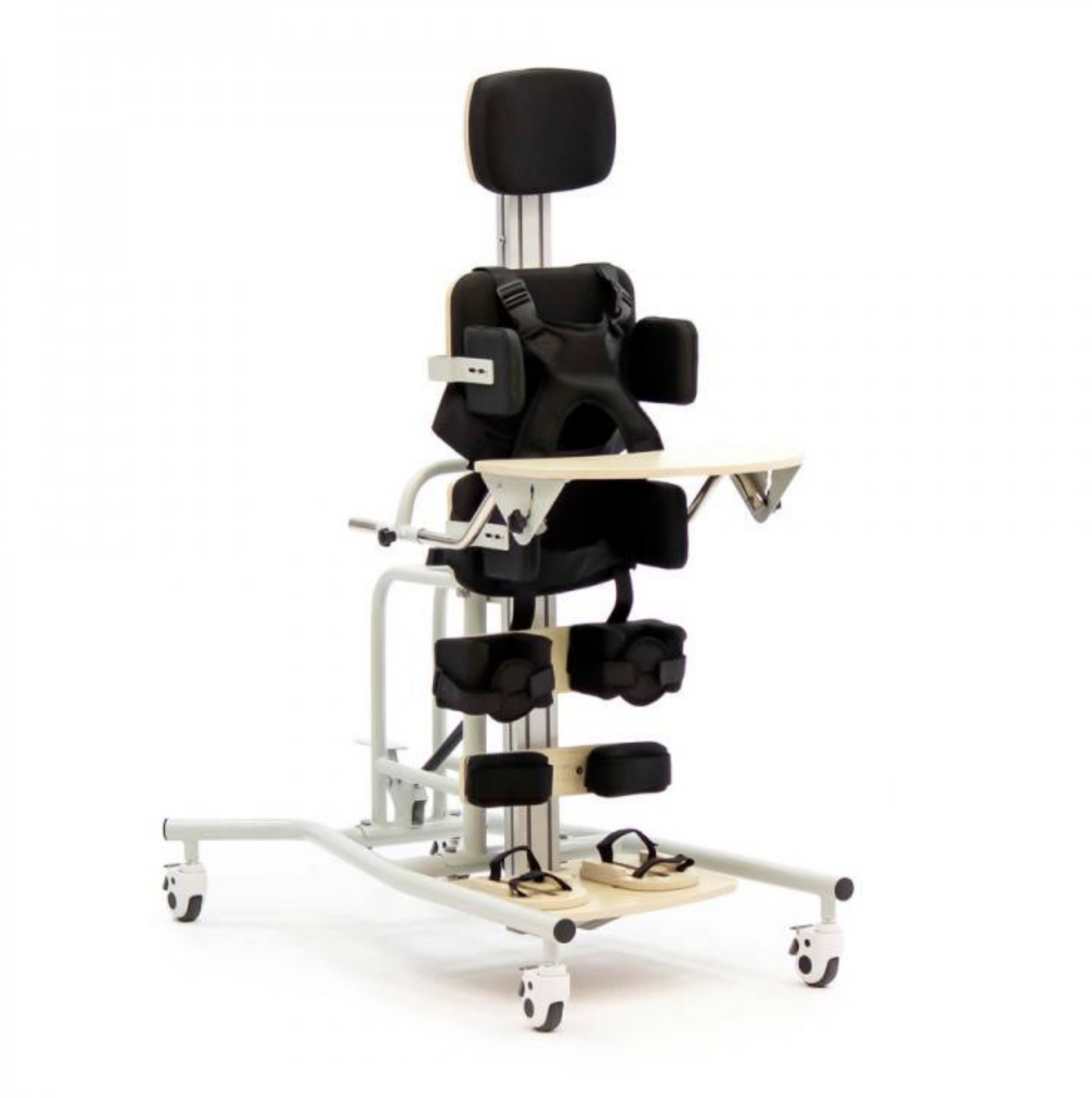 Вертикализатор фиксирует ребенка в положении стоя – устройство оказывает положительное влияние на развитие мышечного корсета, двигательных навыков, способствует нормализации функций внутренних органов, предотвращая возможные осложнения.