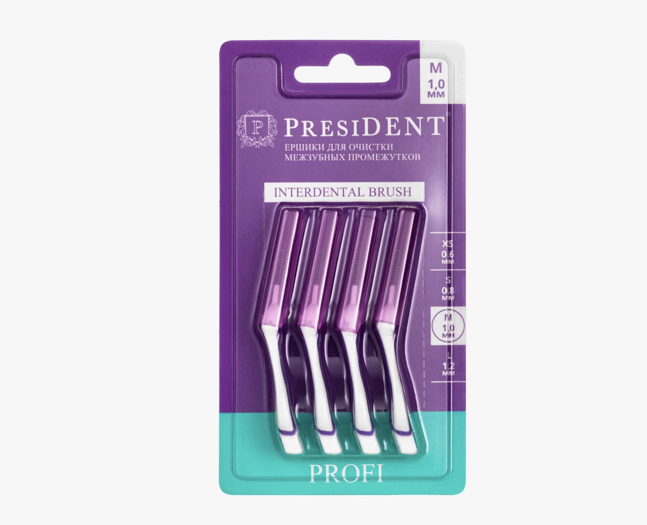 Ёршики для очистки межзубных промежутков PRESIDENT M диаметром 1,0 мм подходят для очистки межзубных промежутков, брекетов, мостов, обеспечивая эффективное очищение труднодоступных мест.